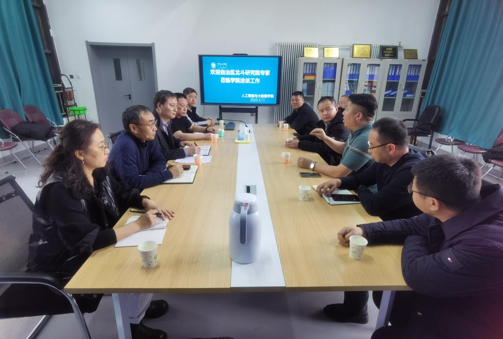 3月11日下午,人工智能与大数据学院与自治区北斗研究院、武汉厚溥公司在行知楼B215会议室召开产教融合合作洽谈会。会议由学院院长刘仁山主持,学院副院长耿卫江、学院教师代表、自治区北斗研究院和武汉厚薄公司专家共同参会。各方围绕产教融合展开深入交流,共寻人才培养与产业发展的契合点。