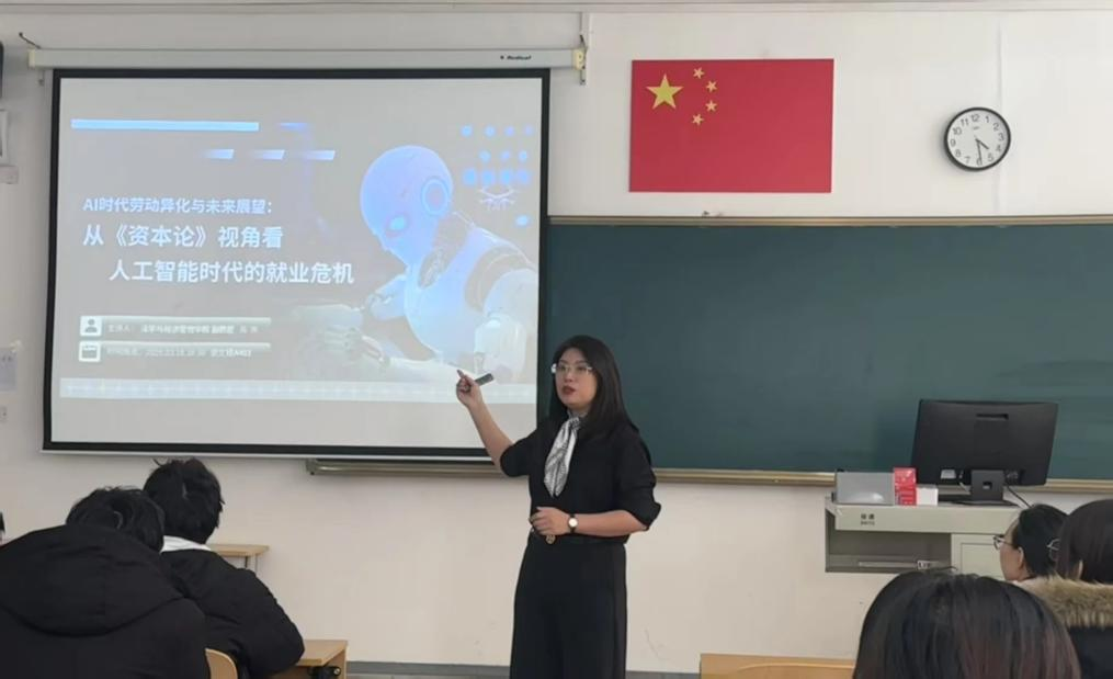 为帮助学生深刻把握当前就业形势,科学规划职业发展方向,提升就业竞争力,3月28日下午,法学与经济管理学院副教授高爽在崇文楼A403教室作题为“从《资本论》视角看人工智能时代的就业危机”的专题讲座。讲座围绕人工智能时代下的就业挑战与机遇展开深入探讨,旨在引导学生理性应对行业变革,树立正确的职业发展观。