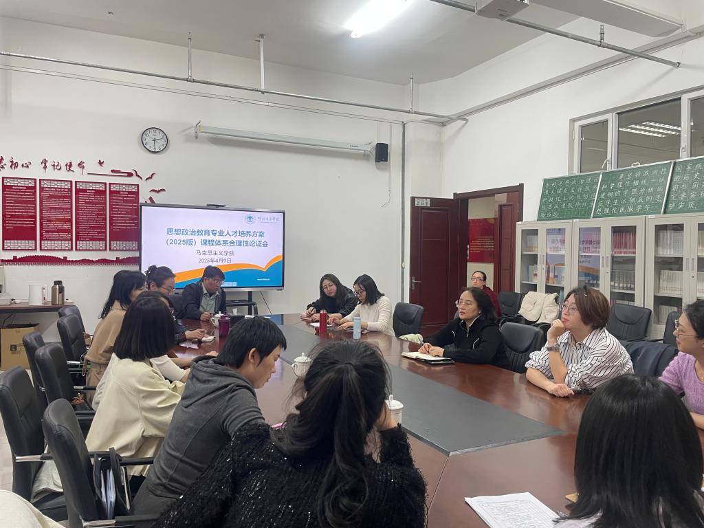 4月9日,马克思主义学院组织召开思想政治教育专业人才培养方案(2025版)课程体系论证会。学院院长吴秀芳及全体专业课教师参加研讨。