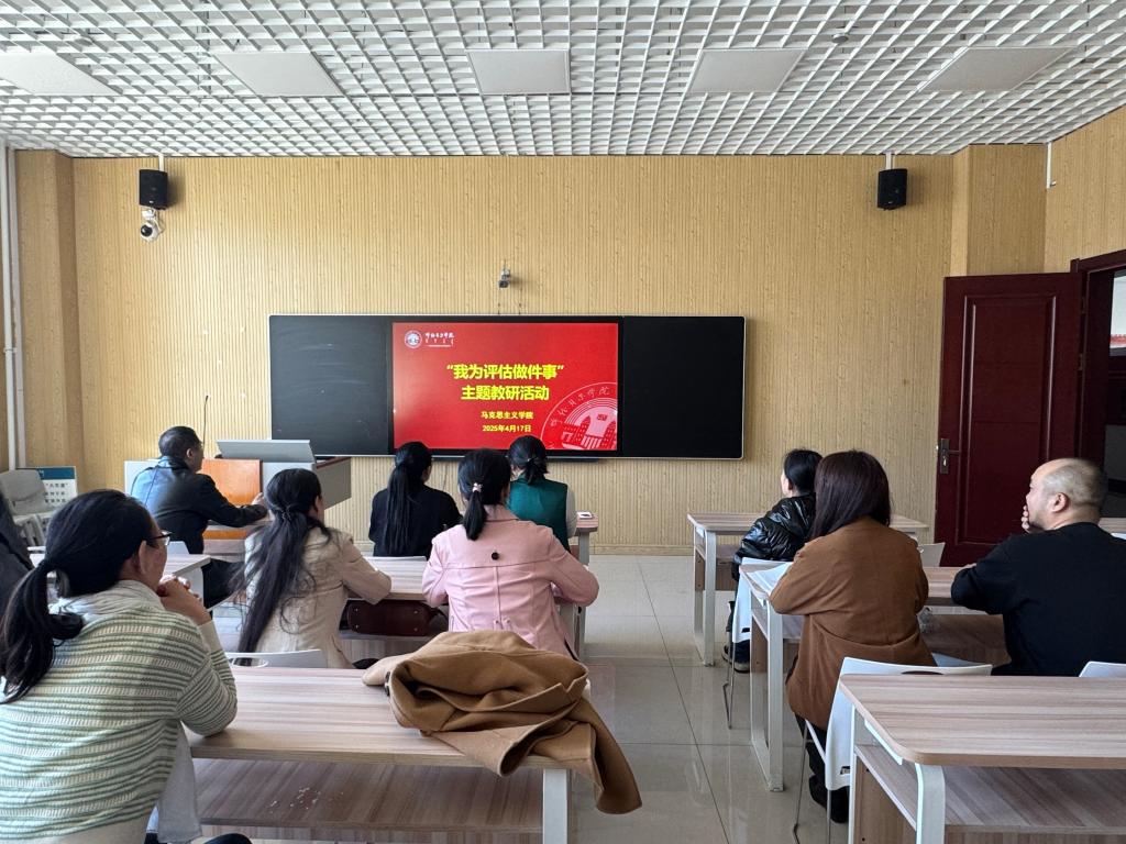 为深入落实学校本科教育教学审核评估工作要求,进一步强化教学规范、提升教学质量,近日,马克思主义学院组织开展了“我为评估做件事”系列主题教研活动。活动以“以评促建、以评促改、以评促管、以评促强”为目标,通过集体备课、教学研讨、师生互动等形式,动员全体师生凝心聚力,以实际行动为评估工作贡献力量。
