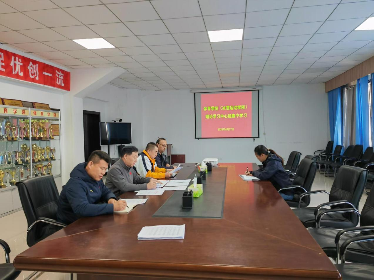 4月27日上午,体育学院(冰雪运动学院)党总支理论学习中心组在东山田径场二楼会议室召开党总支理论学习中心组学习会,专题学习《教育强国建设规划纲要(2024—2035年)》(以下简称《纲要》)和内蒙古自治区党委、自治区人民政府《关于贯彻落实く教育强国建设规划纲要(2024-2035年)》加快建设教育强区的意见》(以下简称《意见》)文件精神,会议由学院党总支书记胡日查毕力格主持,全体理论学习中心组成员参加学习会。