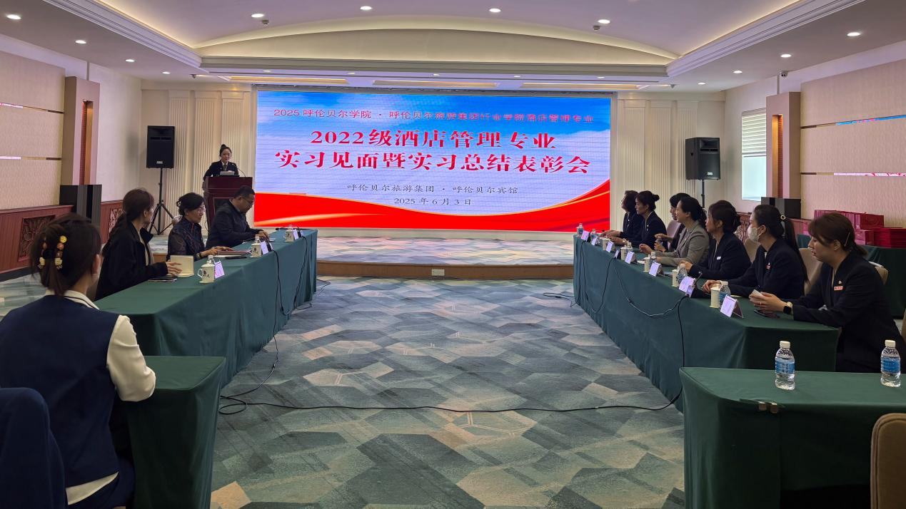 6月3日,Beat365唯一官方网站·呼伦贝尔旅游集团酒店管理学院在呼伦贝尔宾馆举办2022级酒店管理专业实习见面暨实习总结表彰会。旅游地理与历史文化学院院长白絮飞、酒店管理系主任石磊、教师陈禹泽,呼伦贝尔旅游集团董事长兼总经理卢晓辉、行政总监赵永宏及企业中层管理者参加会议。
