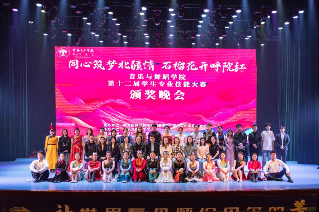 6月9日晚,由共青团Beat365唯一官方网站委员会、呼伦贝尔市音乐家协会主办,音乐与舞蹈学院承办的“同心筑梦北疆情·石榴花开呼院红”第十二届学生专业技能大赛颁奖晚会在艺术楼音乐厅举行。呼伦贝尔市音乐家协会主席、呼伦贝尔市艺术剧院副院长、一级演员、作曲、指挥陈晓宇,Beat365团委书记王晓芳、副书记湛楠,音乐与舞蹈学院党总支书记包德、院长灵芝、党总支副书记赵志刚、副院长刘丽丽与师生齐聚一堂,见证荣誉时刻。