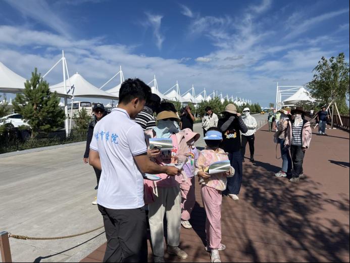 第三站,大家来到了呼伦湖。同学们顶着炎炎烈日,沿湖岸线开展环保行动:向过往游客和周边居民发放呼伦湖环境保护宣传册,讲解湖泊生态系统的重要性;手持工具,清理塑料垃圾、枯枝等杂物,重点清理草丛中隐蔽的微塑料废弃物。此次活动不仅改善了呼伦湖周边的环境卫生,更通过广泛宣传提升了公众的环保意识,为推动呼伦湖生态保护工作常态化、长效化奠定了良好基础。