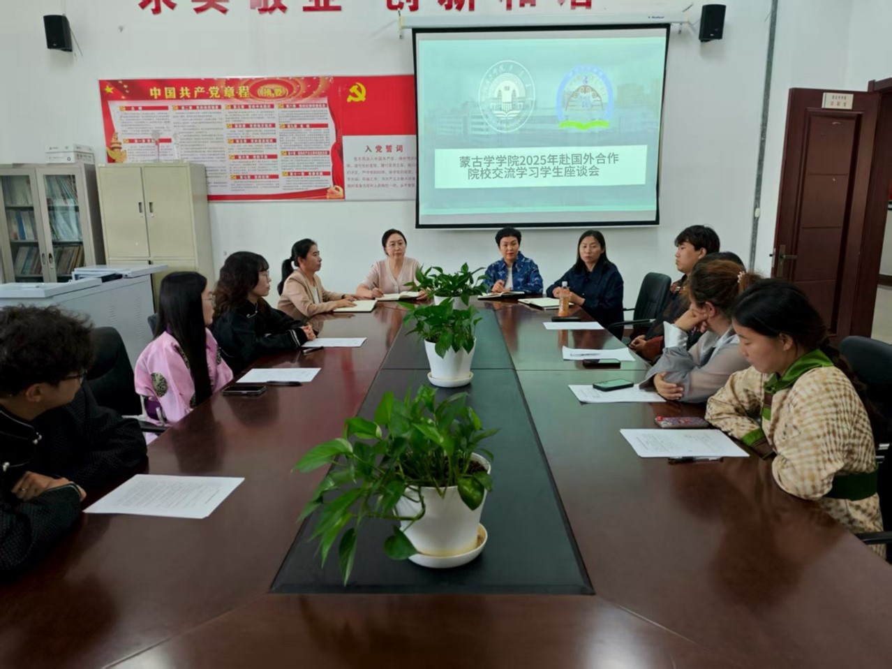 8月28日下午,蒙古学学院在崇文楼B221会议室举办2025年赴国外合作院校交流学习学生座谈会。学院领导班子成员以及8名即将赴蒙古国立大学东部分校学习的学生参加座谈。会议由学院院长白秀峰主持。