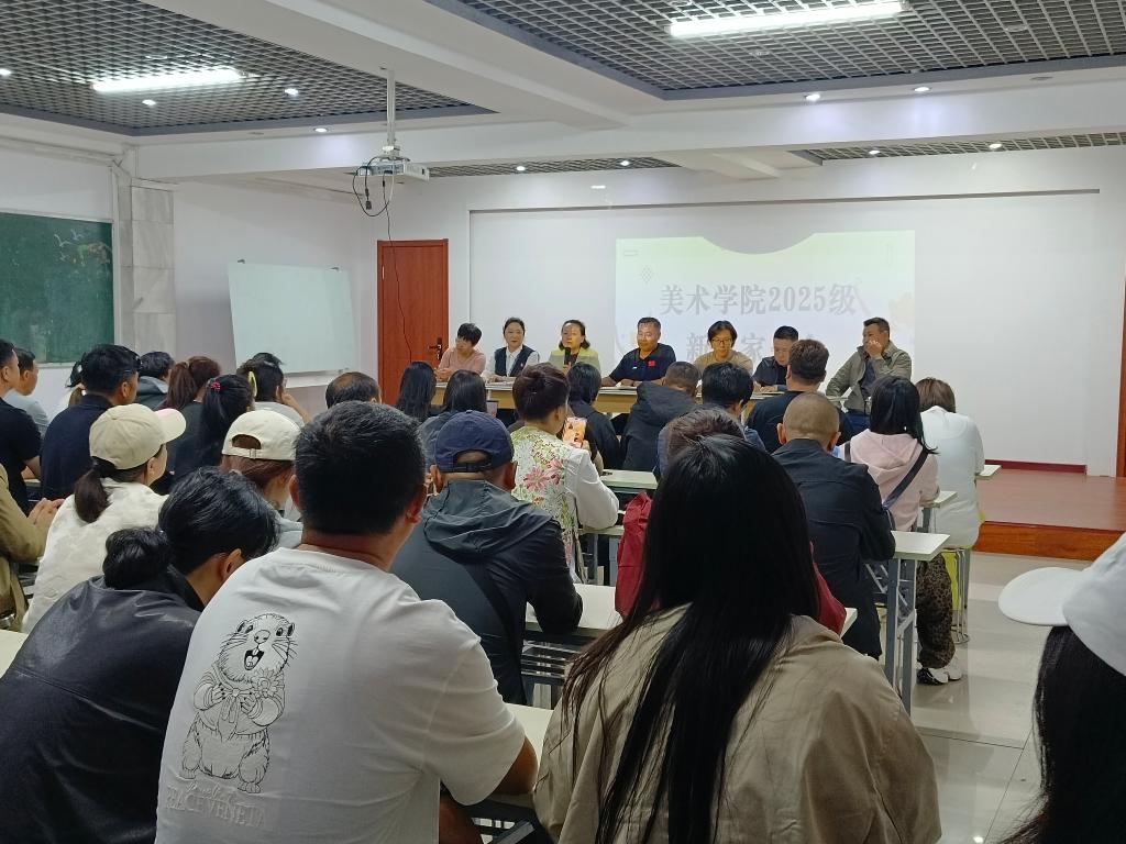 会上,毛永强代表学院对各位家长的到来表示欢迎和感谢。他围绕学院的办学历史、育人理念、发展现状与未来规划进行了整体介绍,阐述了学院致力于培养具有崇高理想信念、扎实专业基础、卓越创新能力和深厚人文素养的高素质美术人才的目标。张巍巍就学生日常教育管理、学风建设、学生活动及安全稳定等方面的工作向家长们做了详细说明。她重点介绍了学院在学生思想政治引领和综合素质培养方面的举措,希望家长能持续关注学生的身心健康与全面发展,与学院保持密切沟通。张健向家长们详细解读了2025级各专业的培养方案、课程设置、教学特色及学业要求。他介绍了学院的教学资源、实践平台以及未来的升学就业方向,让家长对学生即将面临的学习生涯有了清晰的认识。郎彩虹则针对新生入学后的适应性引导、助学政策、心理健康关注及常见安全问题进行了贴心分享,提供了许多实用的建议,帮助家长更好地配合学院工作,共同支持学生平稳过渡到大学阶段。在互动环节,家长们就关心的问题进行了提问,学院领导及老师现场给予了解答。会议氛围热烈,家长们对学院的各项工作表示了肯定和感谢,并表示将全力支持孩子的大学学习和生活。