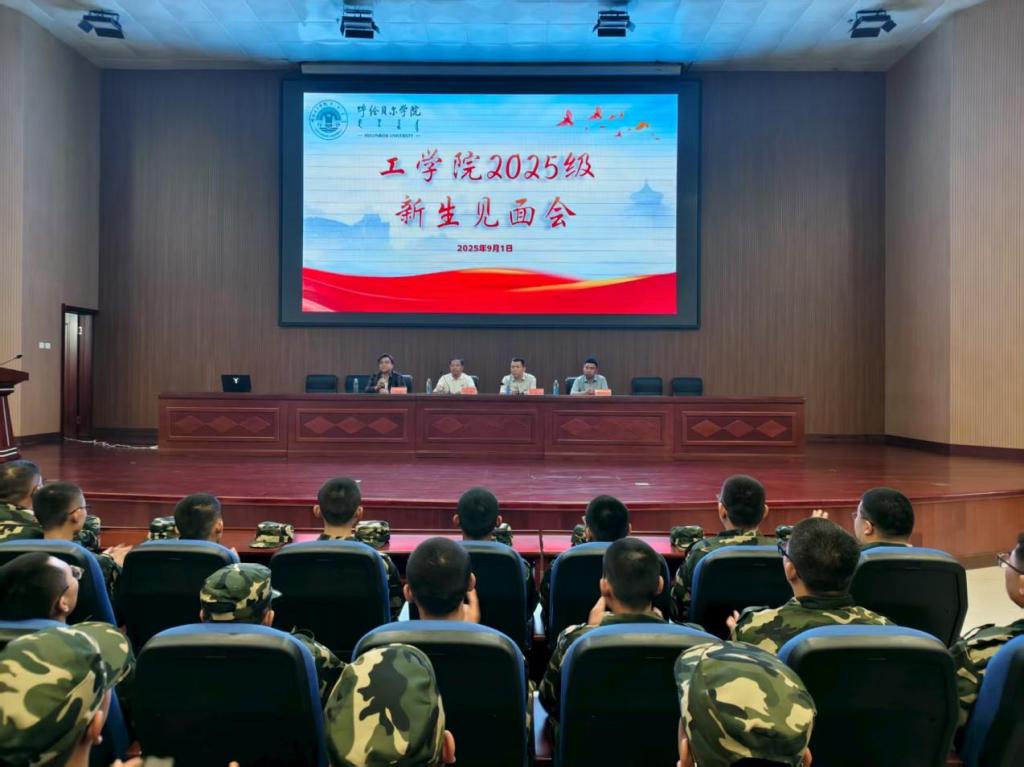 9月1日晚,工学院在图书馆四楼报告厅召开了新生见面会。学院党委书记王旭、副院长吴淘锁、党委副书记吴晗、副院长申玉宏、团学办主任曹海燕、副主任佟晟、新生辅导员诺敏、刘芳邑、杨晶晶以及工学院2025级407名新同学参会。会议由吴晗主持。