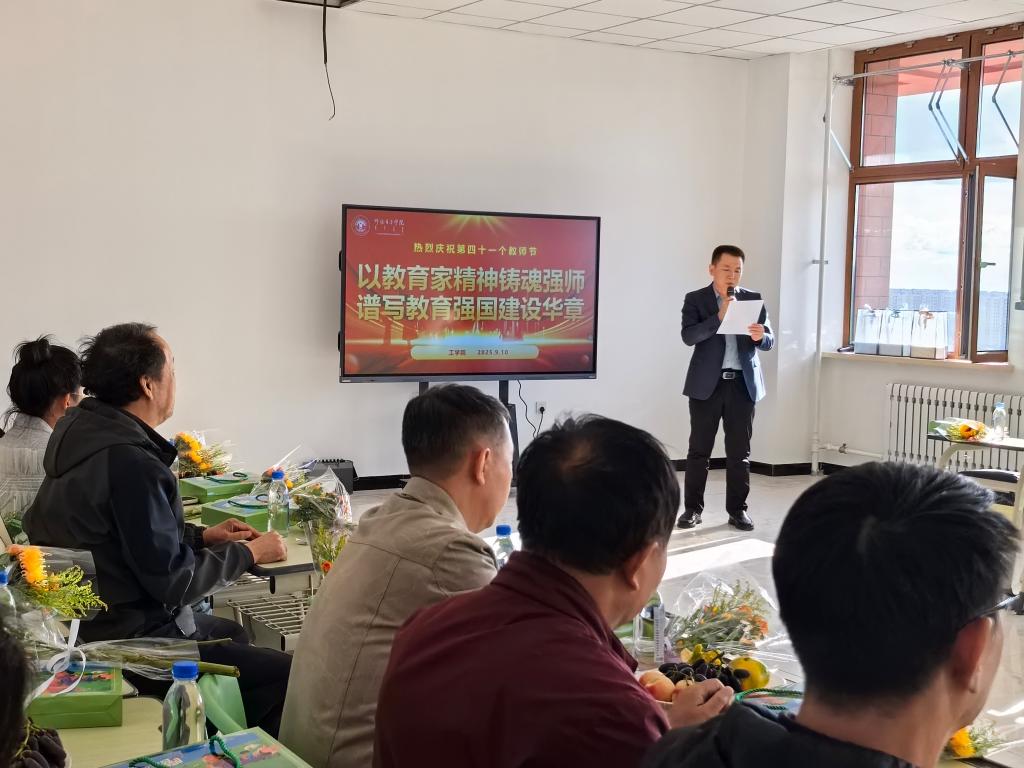 9月10日下午,工学院在产教融合楼302室召开庆祝第41个教师节座谈会。会议主题为“以教育家精神铸魂强师,谱写教育强国建设华章”,学院领导班子成员及全体教师参加会议。会议由学院副院长吴淘锁主持。