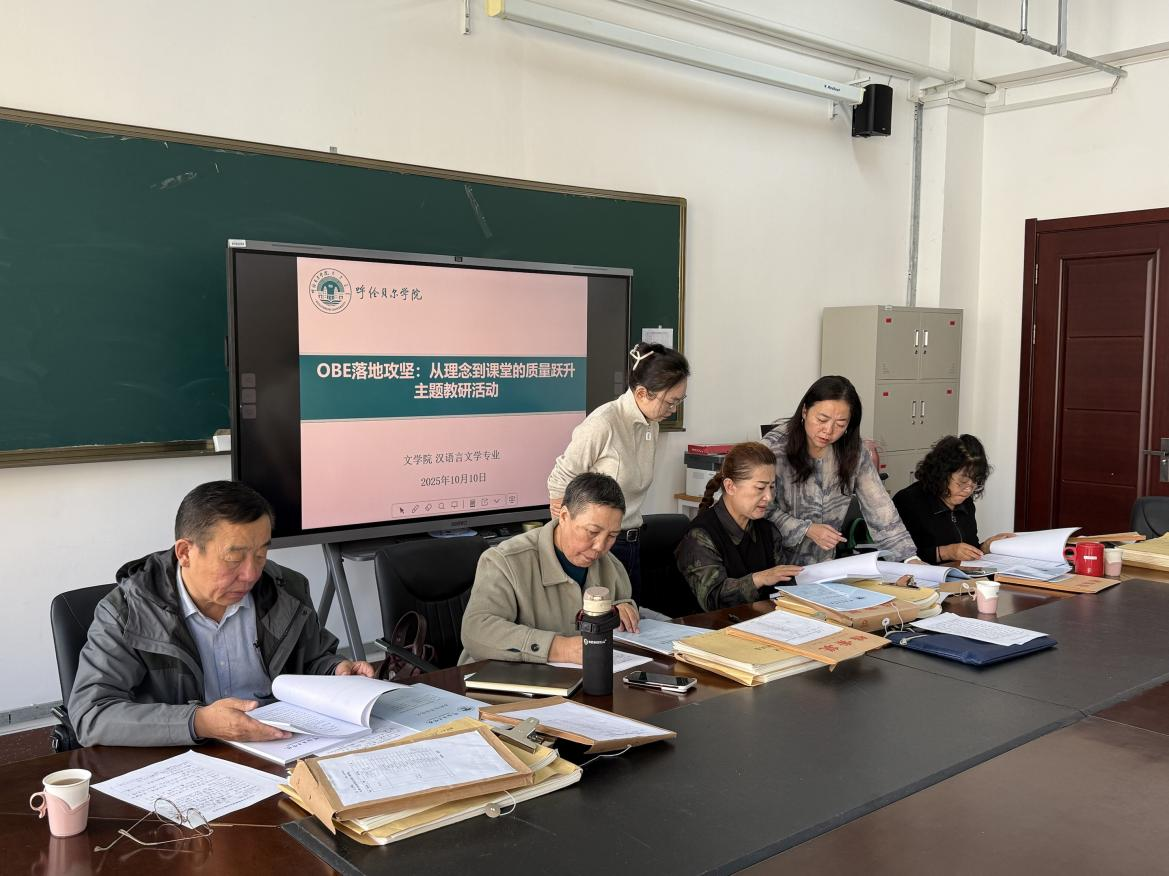 10月10日上午,文学院在崇文楼B428会议室举行“OBE落地攻坚:从理念到课堂的质量跃升”主题教研活动。本次活动汇聚了学院各专业的骨干教师,就如何将OBE教学理念深度融入课堂进行探讨。