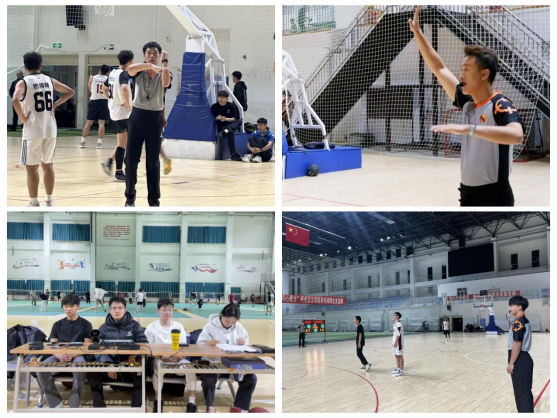 而守护这场赛事公平有序的核心力量,是一支以体育学院(冰雪运动学院)篮球专选班师生为骨干的篮球志愿裁判员队伍。在学院教师张大伟、秦智勇的带领下,16名志愿者历时两个月,全身心投入赛事执裁一线、履职尽责。对他们而言,这不仅是服务校园体育的无偿担当,更是专业成长的实战课堂——借助真实赛场的执裁经历,学生志愿裁判员得以进一步夯实篮球规则与裁判法基础,在临场应变中积累实战经验、锤炼判罚精度,切实提升专业执裁素养。