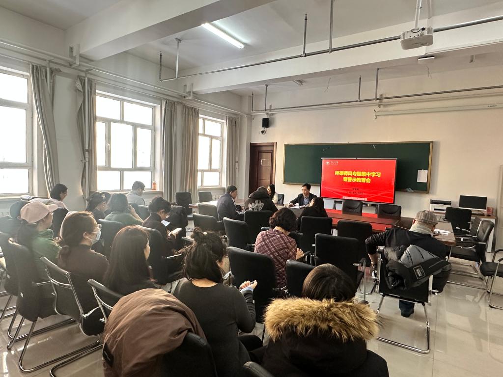 为深入贯彻落实学校师德师风建设工作部署,切实筑牢教职工思想道德和行为规范防线,12月3日,文学院在崇文楼B428会议室组织召开师德师风专题学习暨警示教育大会。会议由学院党委书记核心主持,全体教职工参加。