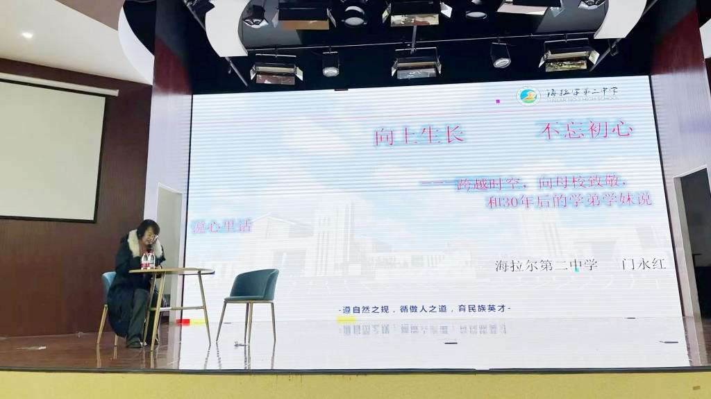 为强化师范生实践能力,深化专业建设,12月5日下午,文学院邀请海拉尔第二中学语文教师暨全国优秀教师、文学院1991级汉语言文学专业校友门永红返校,以“不忘初心,向上生长”为题开展讲座。文学院副院长李晓玲、实训中心主任刘玉环及2023级汉语言文学专业全体学生参加聆听。