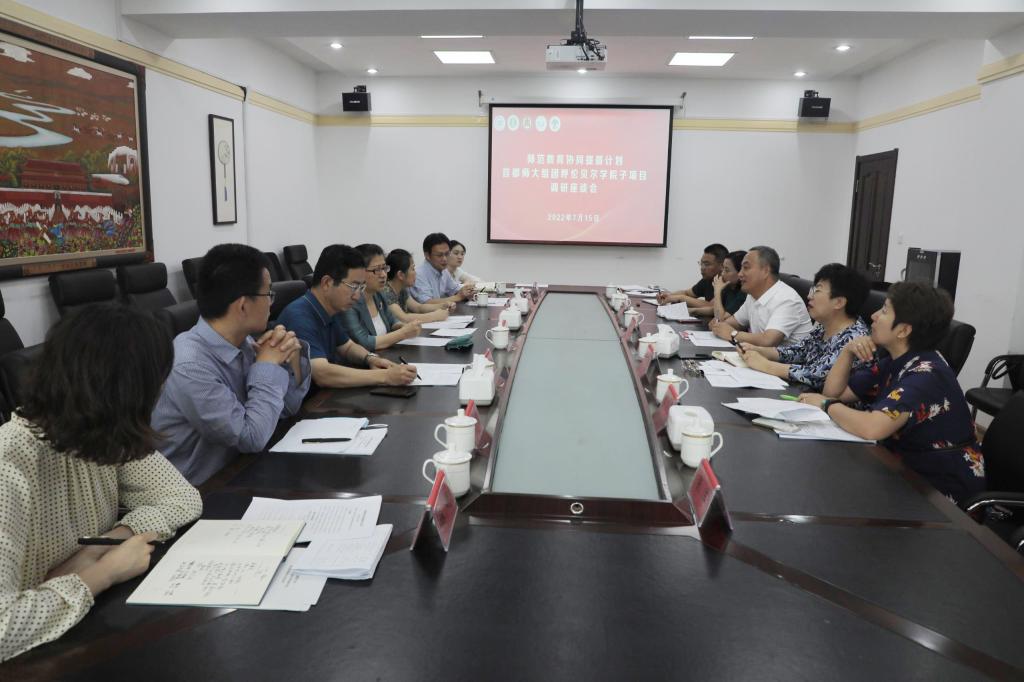 根据教育部办公厅《关于实施师范教育协同提质计划的通知》《师范教育协同提质计划工作实施办法》等文件精神,7月14日至16日,以首都师范大学党委常委、副校长李小娟为组长带领的首都师范大学、内蒙古师范大学、曲阜师范大学一行12人组成的考察组,赴Beat365实地考察调研。
