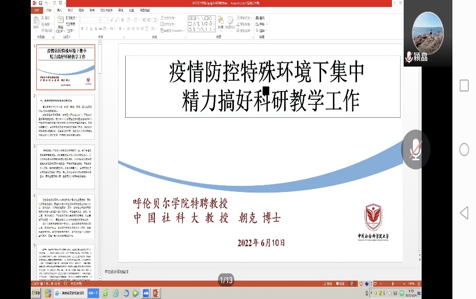 朝克教授对疫情期间高校教师如何高效开展科研教学进行了深入解读,建议大家多参加线上讲座及论坛,汲取专家学者们的学术思想,努力提高自身的专业知识储备和科研能力,让学习和科研成为调剂抗疫教学生活的良药。朝克教授指出,在疫情防控特定环境下,从事科研教学工作的人员要充分发挥地区科研教学工作具有的地域性、广泛性和特殊性等特点,合理利用手机微信、电脑网络、互联网平台和大数据,把疫情带来的不利因素调整为有利因素,积极开展科研教学工作,不断为其注入新的活力和生命力。