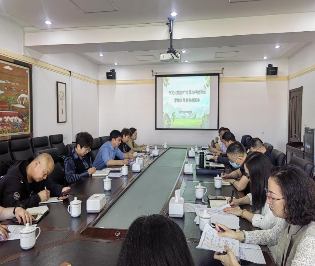 6月8日上午,在逸夫楼419会议室,党委委员、副校长敖特根主持召开市文旅广电局合作项目推进会,科学技术处及相关二级学院负责人参加了本次会议。