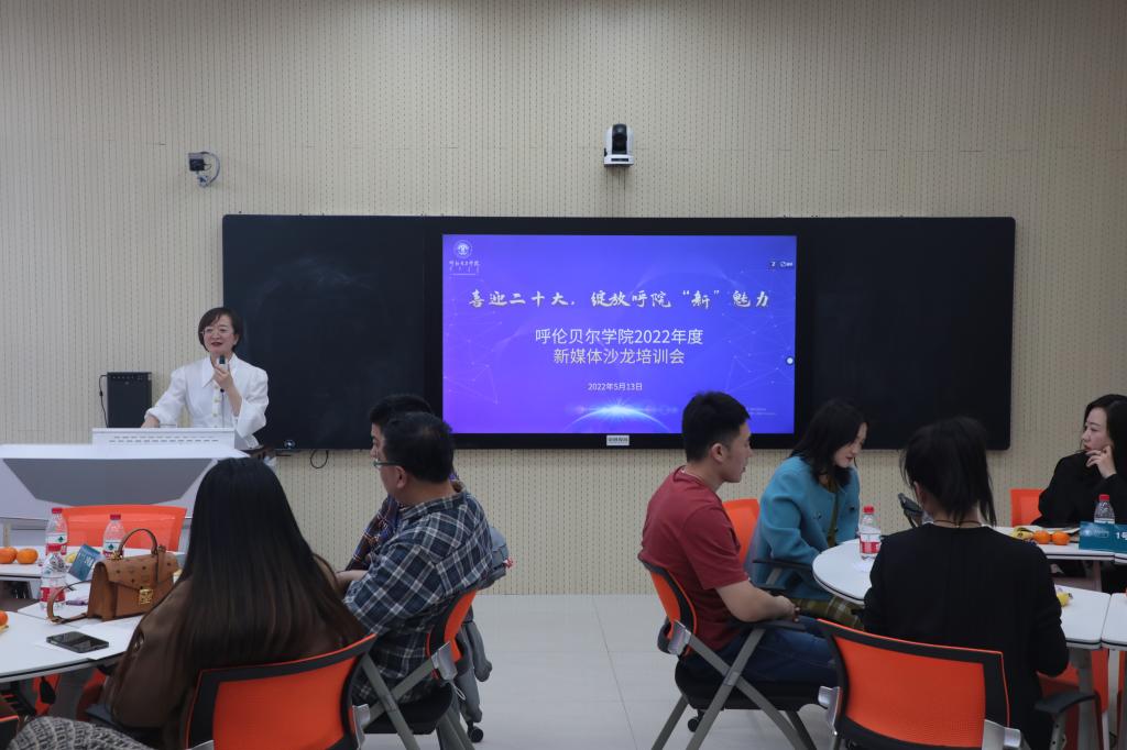 为进一步发挥新媒体在思想政治教育中的作用,引导各学院运用新媒体新技术推动思政工作“活”起来,以实际行动和优异成绩迎接党的二十大胜利召开,5月13日下午,“喜迎二十大,绽放呼院‘新’魅力”2022年度新媒体沙龙培训会在崇文楼330教室举行,党委宣传部副部长张阳及来自23个新媒体联盟的指导老师齐聚一堂,交流运营经验,共论正能量传播。沙龙由党委宣传部宣传网络科副科长白玉红主持。