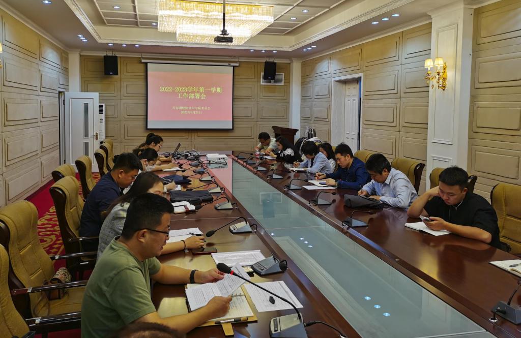 8月25日上午,校团委在图书馆三楼会议室召开2022-2023学年第一学期工作部署会,校团委全体成员、各学院团总支书记参加此次会议,团委书记郝新君主持会议。