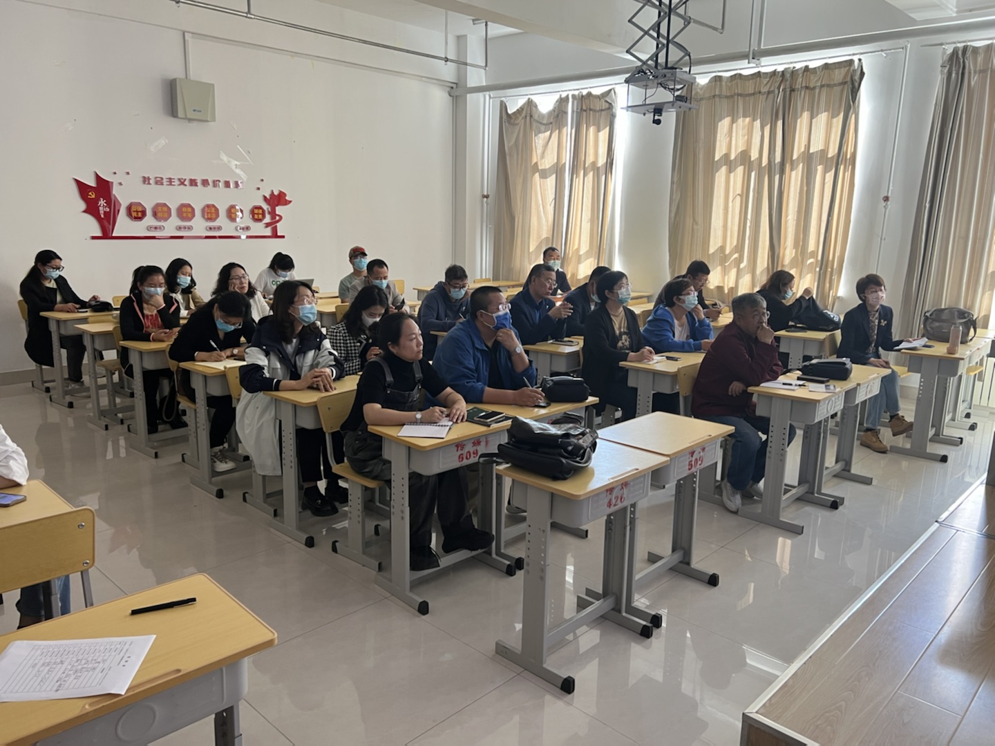 培训详细介绍了新建智慧教室的硬件配置,分别以教务管理人员、教师、学生不同身份示范了系统中功能、各项工具的使用方法和具体用途。培训中,老师们积极提问和参与,对新建智慧教室及其教学模式表现出极高的热情。