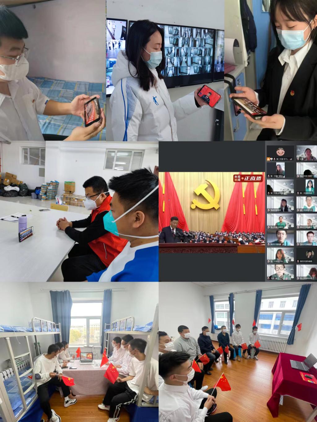 志愿者师生们于疫情防控间隙、值班工作中抽出时间进行直播观看学习,学生们形成以宿舍为单位的集体学习,有课的师生利用课余时间通过线上平台观看重播。不同的时间、变换的地点,却是师生们同样的神情专注。会后,校园内迅速掀起了积极学习党的二十大精神热潮,广大青年师生积极主动,以昂扬向上的姿态认真学习,营造出浓厚的学习氛围,吹响深入学习贯彻党的二十大精神的集结号角。