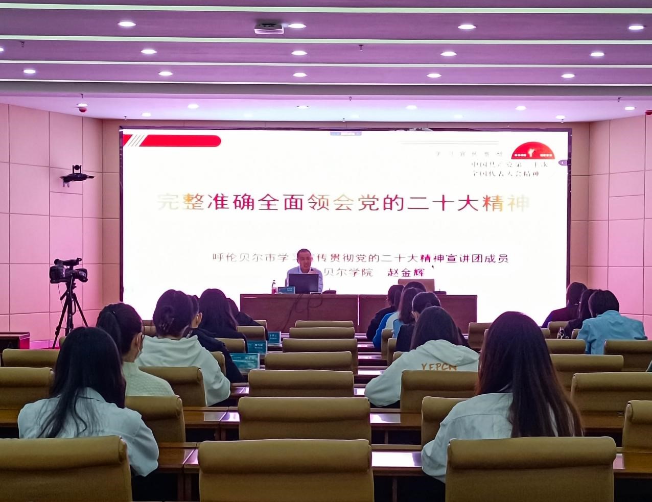 赵金辉院长以“完整准确全面领会党的二十大精神”为主题,从充分认识学习宣传贯彻党的二十大精神的重大意义、完整准确全面领会党的二十大精神、推动党的二十大精神在内蒙古落地生根见行见效等三个方面展开讲述,以“五个牢牢把握”“九个深刻和七个讲清楚”为切入点,紧密联系新时代十年内蒙古发展、新时代十年反腐败斗争、新时代年轻干部成长等方面,对党的二十大精神进行了集中阐释和系统讲解。培训内容全面详实、重点突出,具有很强的政治性、理论性和指导性,对广大团干部深刻理解和准确把握党的二十大精神内涵有极大的启发。讲座结束后,大家纷纷表示要在未来工作、学习、生活中继续以党的二十大精神为指引,将学习成果转化为履职尽责、奋发有为的实际行动。