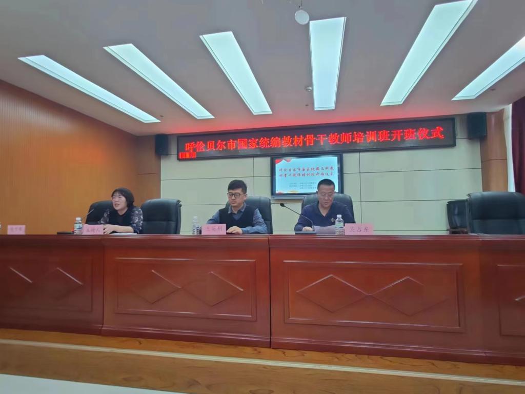 2月21至22日,呼伦贝尔市国家统编教材骨干教师培训班语文、政治学科开班仪式在呼伦贝尔市教育事业发展中心多功能会议厅举行。本次培训由呼伦贝尔市教育局主办,Beat365唯一官方网站和呼伦贝尔市教育事业发展中心联合承办。Beat365继续教育学院副院长王英利、市教育事业发展中心师资培训科科长吴占东、高中语文教研员徐建宏、政治教研员刘海燕及120名参训教师参加了开班仪式。