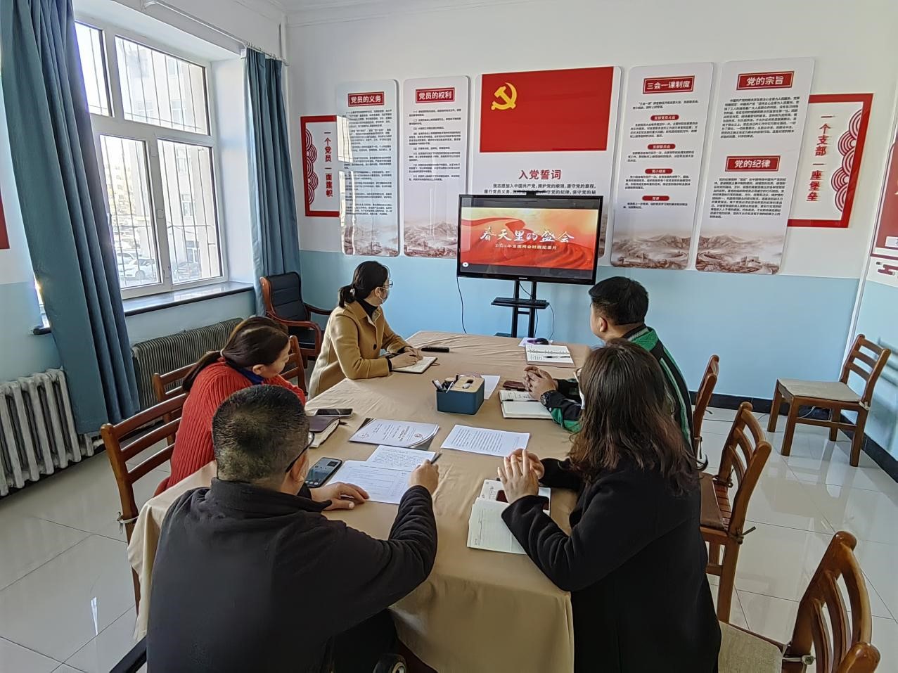 会上,郝新君书记领学2022年《政府工作报告》原文和习近平总书记在第十四届全国人民代表大会第一次会议上的讲话原文。随后,集体收看“90秒看2023政府工作报告”和《春天里的盛会——2023年全国两会时政纪录片》。