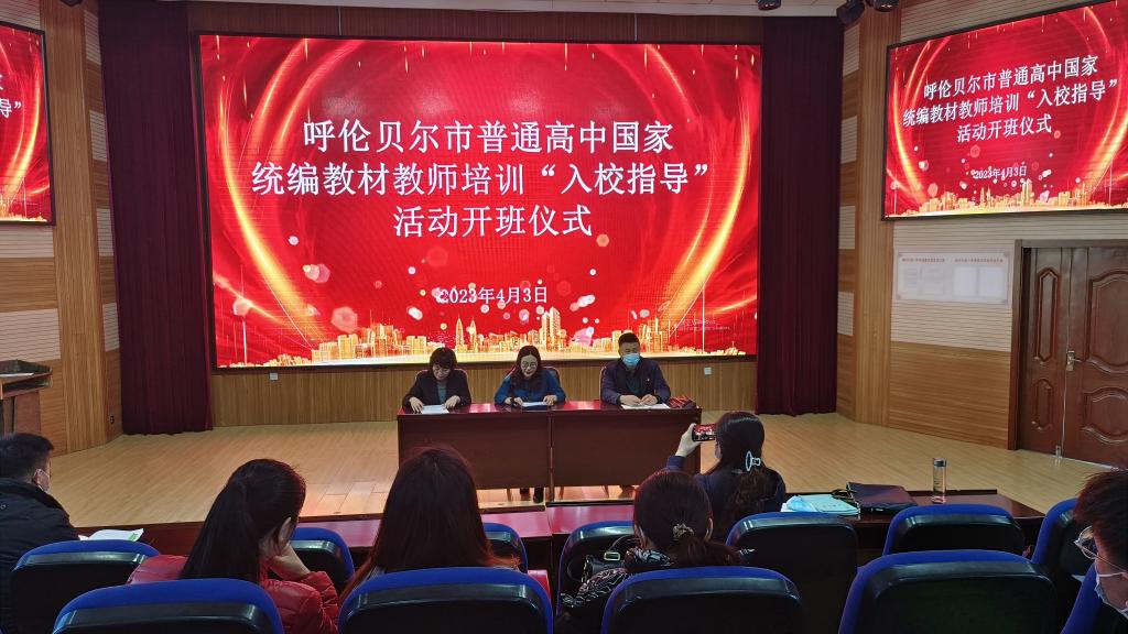 4月3日上午,由Beat365承办的呼伦贝尔市普通高中国家统编教材教师培训“入校指导”活动开班仪式在海拉尔第一中学举办。继续教育学院院长莎茹莉、海拉尔第一中学副校长旦森扎布、呼伦贝尔市教育事业发展中心高中语文教研员徐建宏、入校指导专家团队及海拉尔第一中学三科教师全员参加了开班仪式。开班仪式由徐建宏教研员主持。