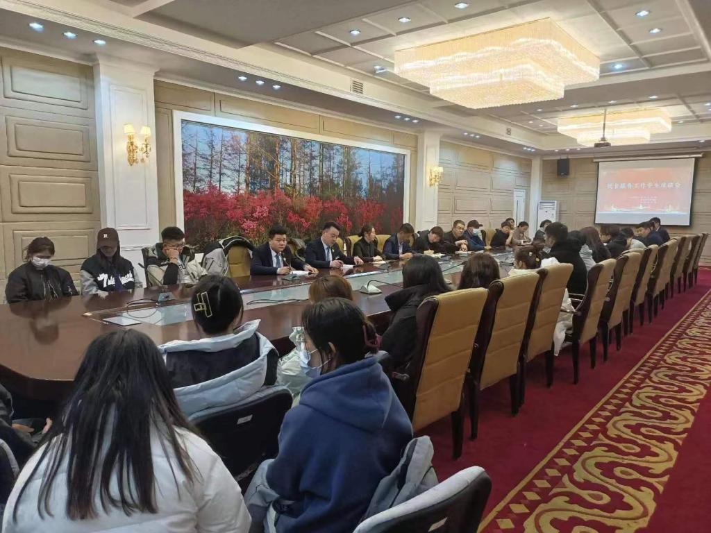 会上,倪俭副处长表示,餐饮保障工作关乎到学生健康成长与生活,意义重大,希望各位学生代表大胆发言,珍惜本次对话机会,提出合理诉求与建议,积极参与到校园建设中去。