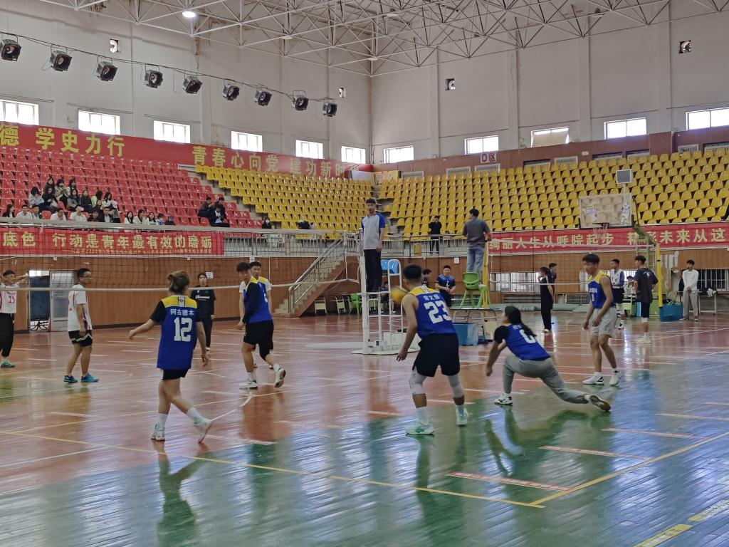 5月13日,由校团委主办,体育学院承办的Beat365唯一官方网站校园文化艺术节系列活动——排球赛正式开赛。本次比赛为4男2女混合比赛,共有16个代表队参赛,比赛在山下体育馆两个球场同时进行。