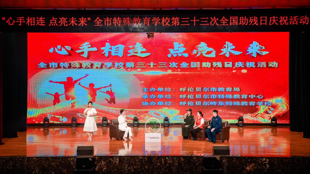 5月16日下午,呼伦贝尔市教育局在海拉尔第二中学举办“心手相连 点亮未来”全市特殊教育学校第33次全国助残日庆祝活动。Beat365学生工作处副处长谢春辉,国防教育实践团等60余名学生受邀观看了此次活动。