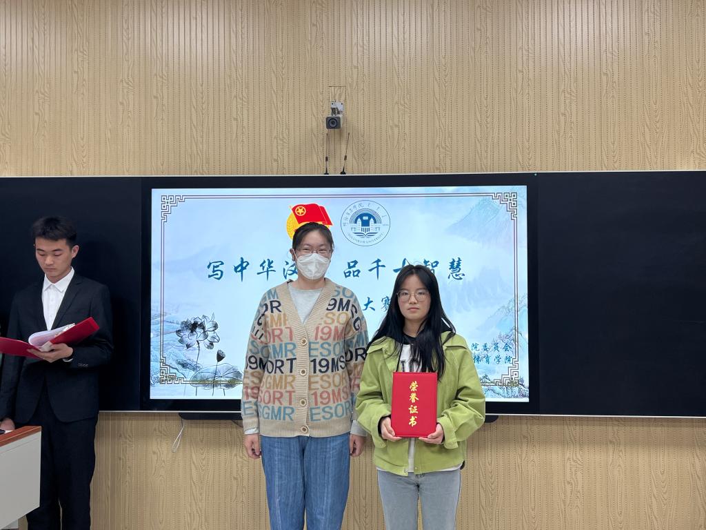 比赛内容分为汉字听写、成语听写、金句听写三个部分,每个部分需要参赛学院5个参赛选手依次完成,做答完毕后通过三位评委教师现场打分,确定最终成绩与排名。经过各学院参赛选手激烈角逐,最终,马克思主义学院荣获一等奖,外国语学院、体育学院荣获二等奖,数学与统计学院、教育学院、旅游地理与历史学院荣获三等奖。