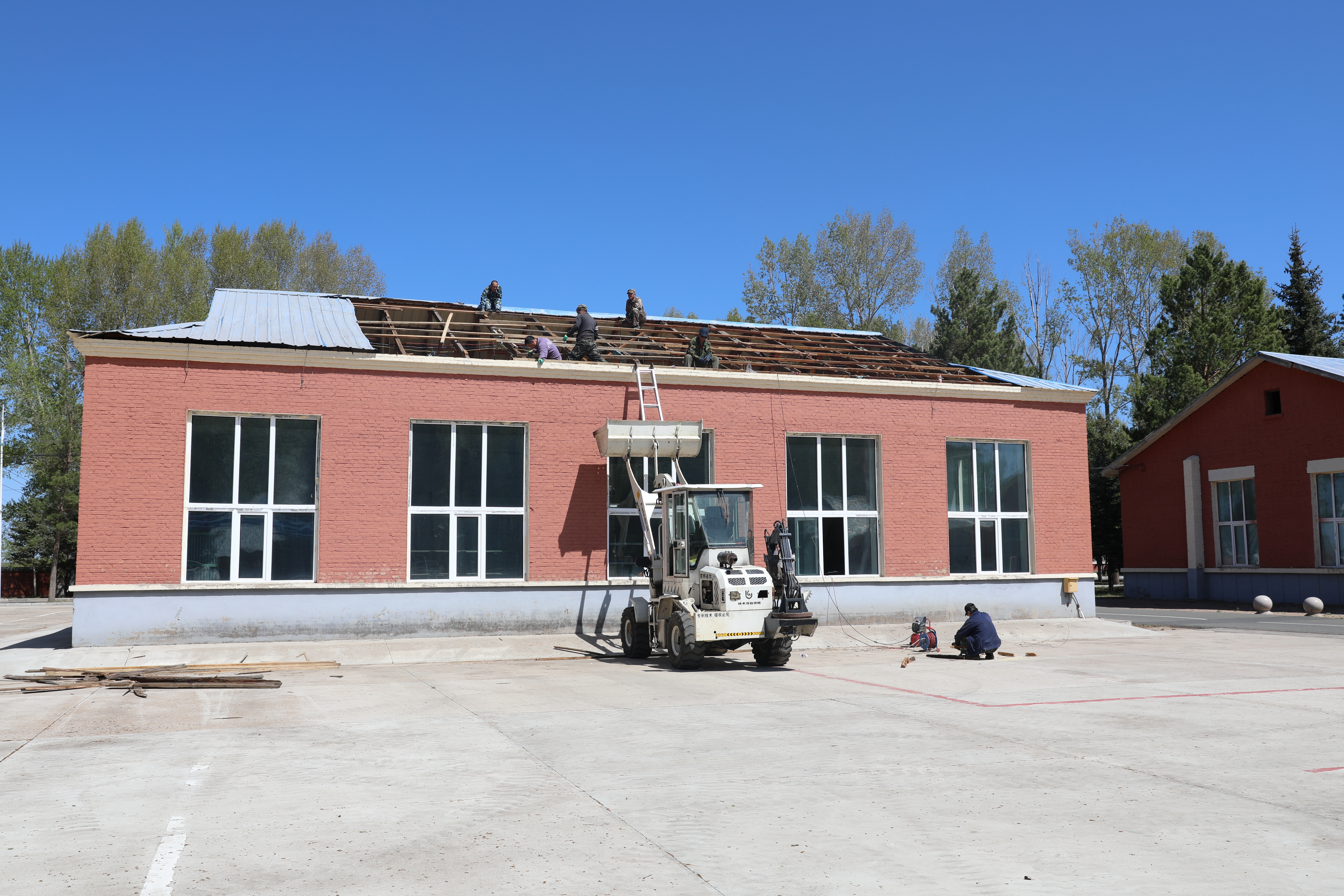 近日,连续大风天气来袭,由于风力强劲,牙克石农林实验实训中心农机实训库的铁皮瓦房顶受损刮落,导致无法正常使用,房屋内部存在电源短路等安全隐患。