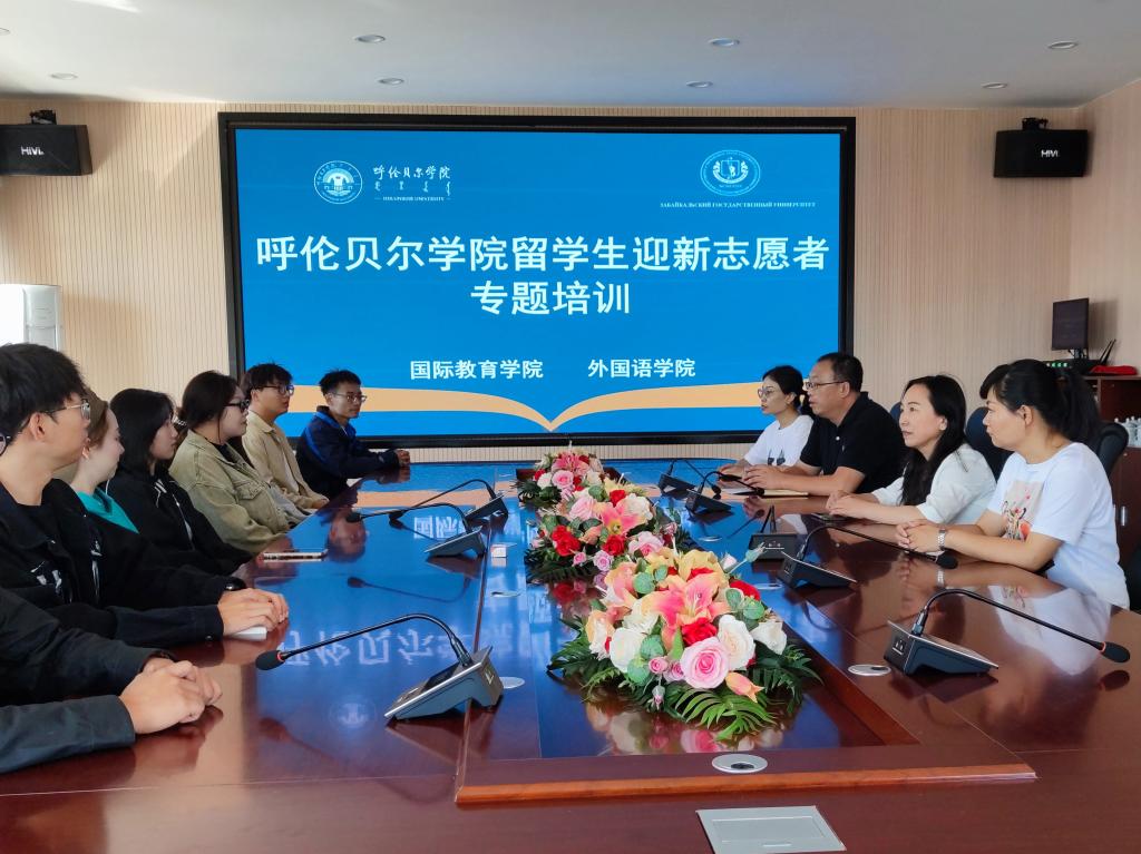 为更好地迎接留学生新生入校,确保迎新工作平稳有序开展,9月4日上午,国际教育学院(外事处)在六楼会议室举办留学生迎新志愿者专题培训会。此次会议由国际教育学院(外事处)副院长李洋主持,外国语学院副院长齐颖及相关教师、学生志愿者参加了培训会。