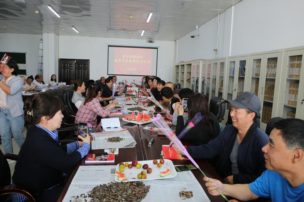 为庆祝我国第39个教师节,9月8日上午,图书馆在五楼会议室举办以“躬耕教坛 强国有我”为主题的2023年教师节庆祝活动。图书馆全体馆员教师参加活动,活动由图书馆工会主席谢群主持。