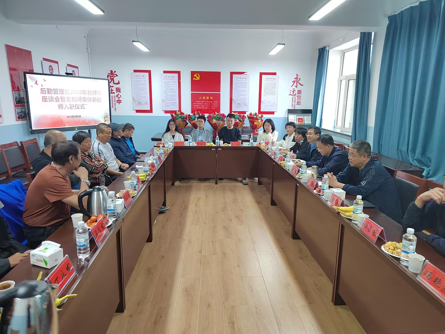 9月9日上午,在第39个教师节来临之际,后勤管理处举行2023年教师节座谈暨老教师荣休新教师入职仪式,庆祝教职工自己的节日。座谈会由后勤管理处处长付刚主持,后勤管理处荣休教师代表、老教师代表、新入职教师代表、科级以上干部和业务骨干人员参加座谈会。