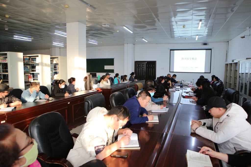 11月8日,图书馆组织全体馆员进行集中业务学习,邀请研究馆员刘乃熙为大家讲解《图书馆学概论》这门课程。