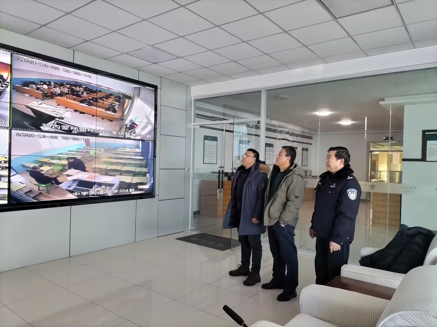 考前,辅导员、班主任深入班级,召开考前动员大会,鼓励学生诚信“敢”考。考试过程中,标准化考场监控显示,考生进入考场时主动将手机、复习资料等与考试无关的物品存放在指定区域,任课教师发卷后到视频监控室进行视频监考,考务工作人员和任课教师不定期巡视考场,可及时发现和处理突发情况,回答考生关于试卷格式、印刷等非内容性问题,所有考生认真答题,考场秩序井然。