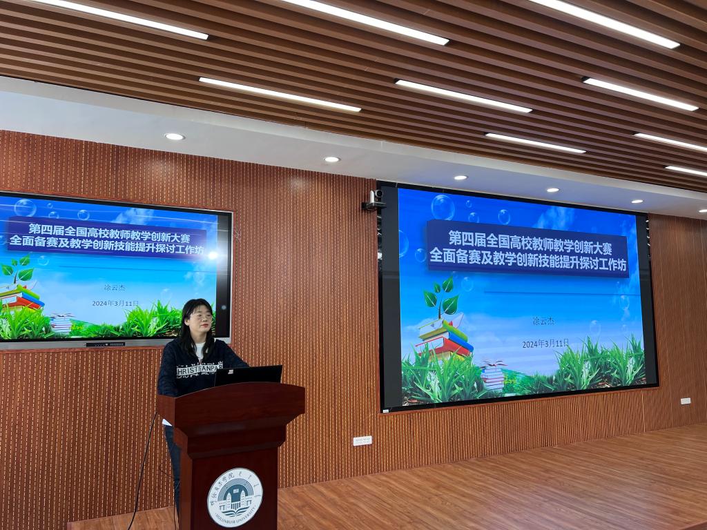 本次培训特邀了人工智能与大数据学院凃云杰教授作题为《第四届全国高校教师教学创新大赛全面备赛及教学创新技能提升探讨工作坊》的讲座。她以其丰富的备赛经验为基础,对大赛的各个环节进行了深入浅出的介绍,并详细解读了评分标准,使教师们能够更好地把握大赛的评判标准。她还强调了不同赛道的共性与差异,使教师们能够根据自己的特点和优势,制定更为精准的备赛策略。