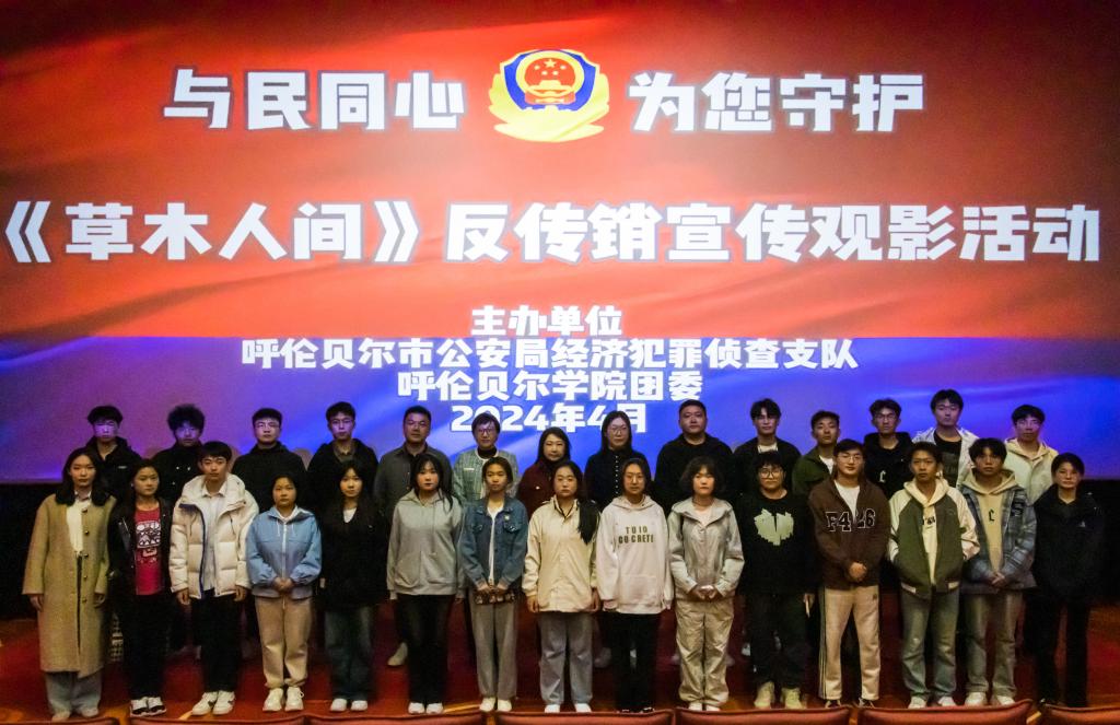 4月23日,在第15个‘5·15’全国公安机关打击和防范经济犯罪宣传日到来之际,团委与呼伦贝尔市公安局经侦支队共同举行中国首部反传销电影《草木人间》主题观影活动。活动由青年民辅警、老干部、社区警格员、平安义警以及Beat36532名师生共同参加。