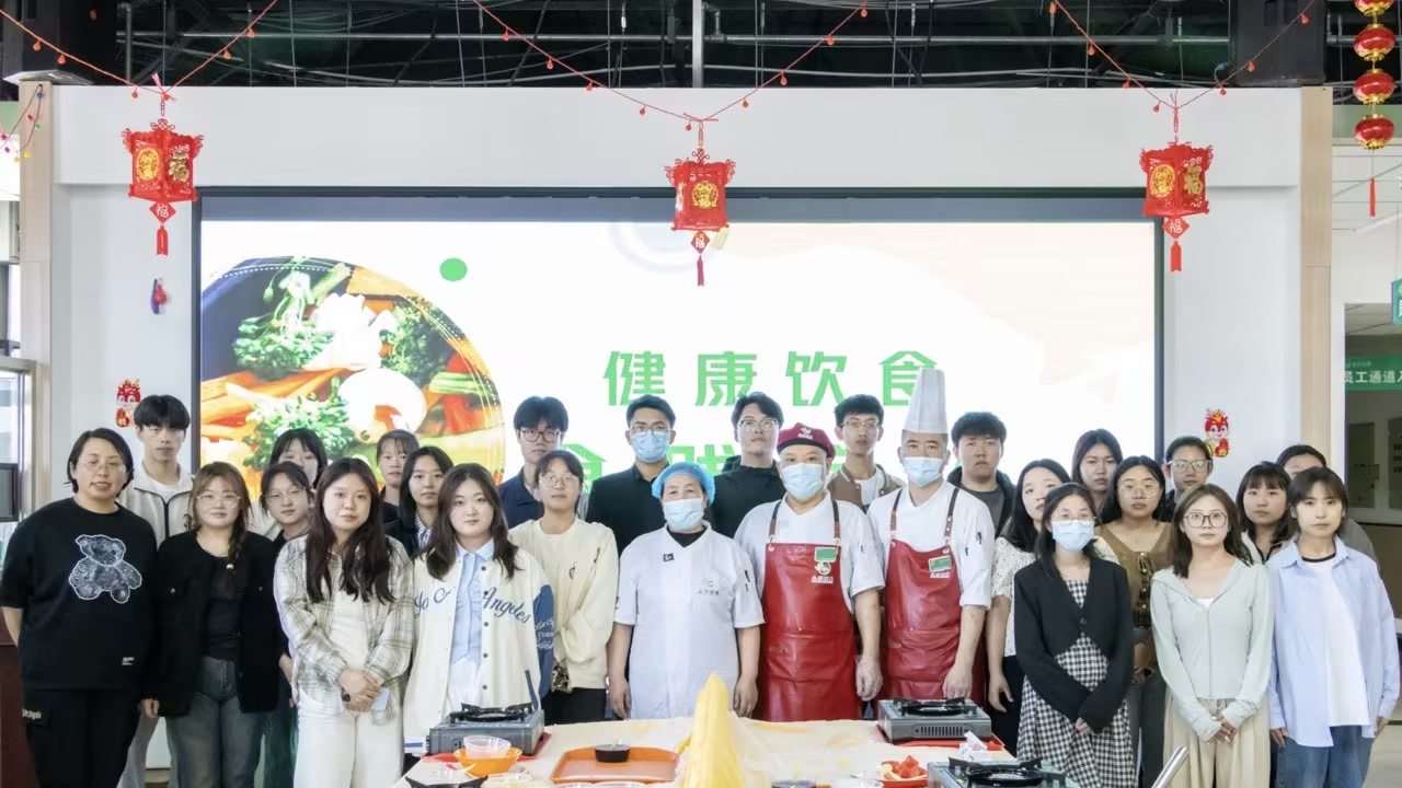 活动中,首先是饮食营养健康知识和烹饪操作讲解,接着由餐饮中心专业厨师现场演示大学生进行烹饪实践,悉心指导木须西红柿、菜瓜片炒肉和蒜蓉西兰花的具体做法,鼓励第一次烧菜的学生积极动手尝试,现场学生踊跃参加。烹饪实践结束后,学生们吃着自己亲手做的菜品,体验到了劳动的乐趣和健康生活的意义,收获多多、幸福满满。
