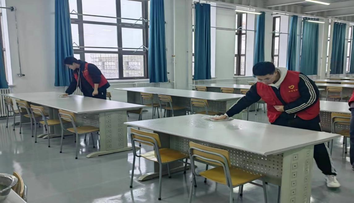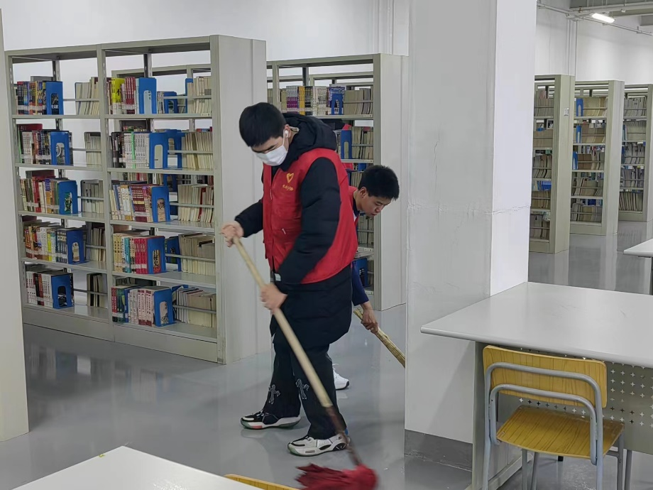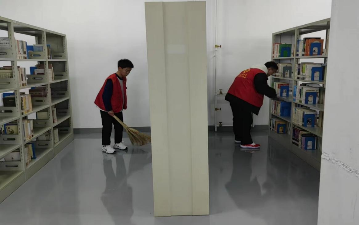 活动开展前,25名志愿者们早早地集合在阅览区门口。进入图书馆阅览区后,在协会负责同学的带领下,大家分工协作,有的擦拭桌椅、有的整理书架、有的扫地、有的拖地,一张张青春洋溢的脸颊流淌着辛勤的汗水,同学们专注、忙碌的身影构成了一幅幅和谐动人的画面。经过大家的共同努力,图书馆阅览区变得整洁明亮,窗明几净。志愿者们看着自己的劳动成果,心中充满了成就感和自豪感。