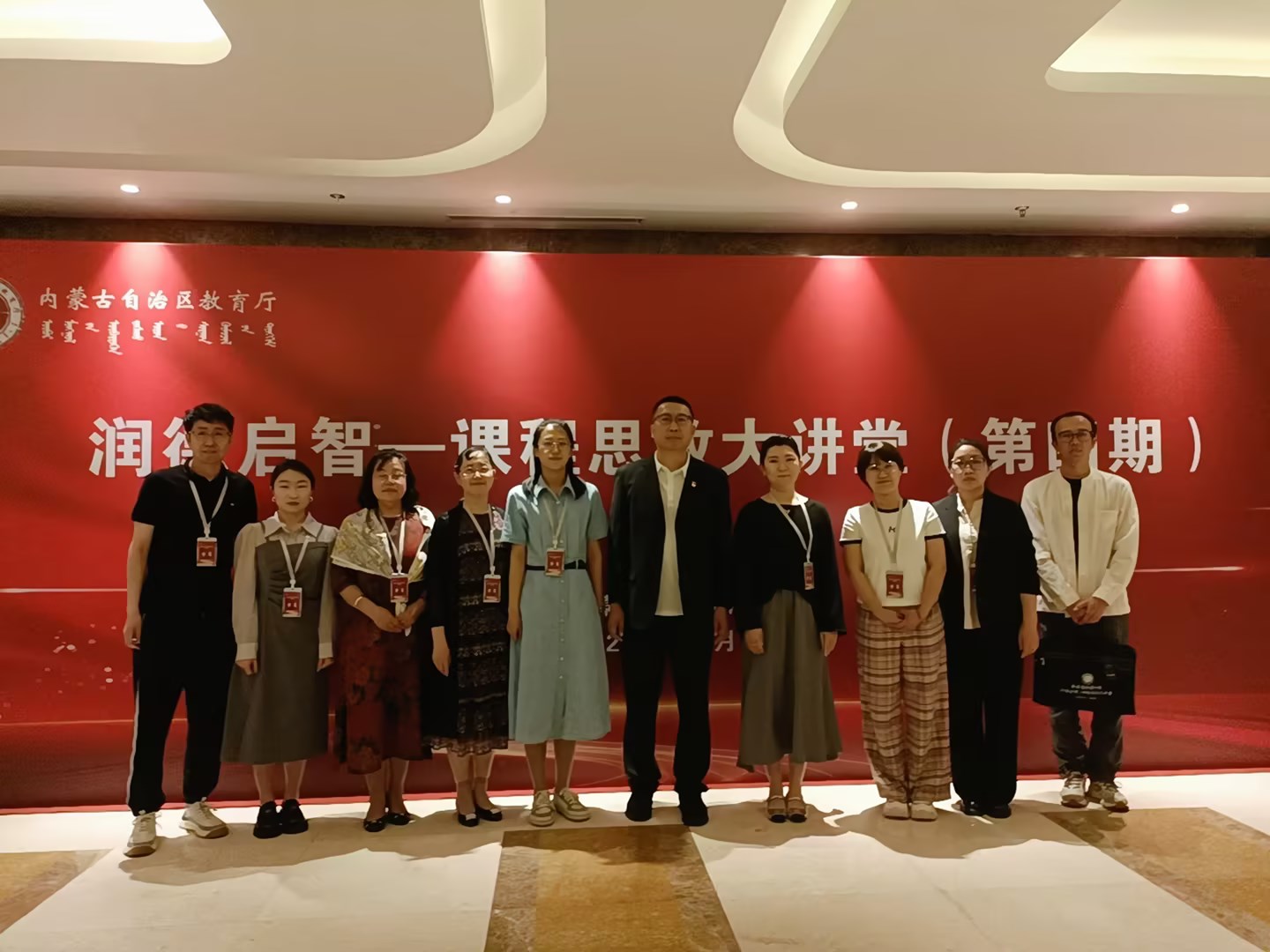 教务处于2024年6月1日组织相关教师前往呼和浩特参加全区高校“润德启智——课程思政大讲堂”。本次课程思政大会为第四期活动,主要围绕文学、历史学、哲学、教育学类课程开展活动,马克思主义学院、教育学院、旅游地理与历史文化学院、体育学院(冰雪运动学院)、文学院、蒙古学学院均选派专任教师现场参会,由教务处副处长王继钢领队前往,其他专任教师线上观看了会议直播。