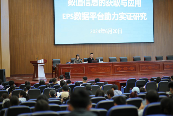 6月20日下午,在图书馆四楼报告厅,图书馆邀请北京搜知数据科技有限公司,举办了主题为“数值信息的获取与应用——EPS数据平台助力实证研究”的培训讲座。讲座由图书馆副馆长郑翠梅主持,北京搜知数据科技有限公司雷振亚讲师主讲。