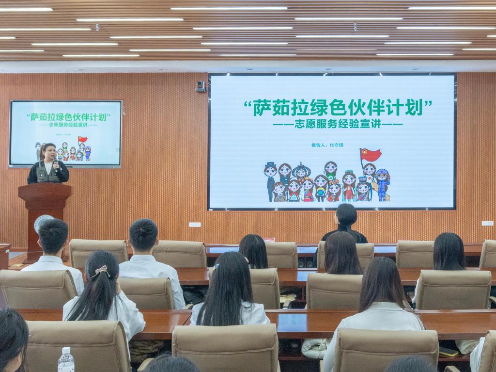 活动邀请了志愿服务领域的优秀青年志愿者代表、呼伦贝尔环保志愿者协会会长代守扬走进学校、面向青年分享自身的志愿服务故事。代守扬结合呼伦贝尔环保志愿协会“萨茹拉绿色伙伴计划生态文化品牌建设”项目进行分享。多年来,他们以环保志愿者为主要力量,不断开展绿色环保主题宣传和志愿服务活动,积极推动生态环保理念进校园、进企业、进社区,普及和广泛传播生态文明理念。她结合自己在绿色发展和志愿服务领域的奋斗故事,勉励广大青年积极投身绿色环保志愿服务,传播生态文明理念,共同建设美丽中国。与会志愿者纷纷表示,要以代守扬为榜样,积极投身志愿服务,在强国建设、民族复兴伟业中挺膺担当。