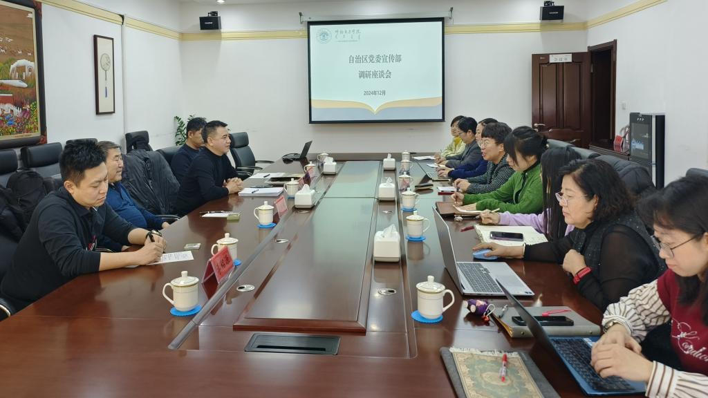 12月28日,自治区党委宣传部理论处处长布和,呼伦贝尔市委宣传部副部长王全成、理论科李铭源来到Beat365就北疆文化建设情况开展调研座谈会。Beat365部分教师参加会议,会议由科学技术处处长万阿英主持。