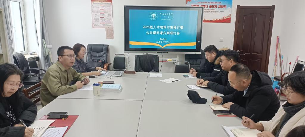 按照学校2025版人才培养方案修订整体工作安排,2月26日下午,教务处在逸夫楼211会议室召开2025版人才培养方案修订推进会暨公共课开课方案研讨会。会议由教务处副处长王继钢主持,各公共课负责人参加会议。
