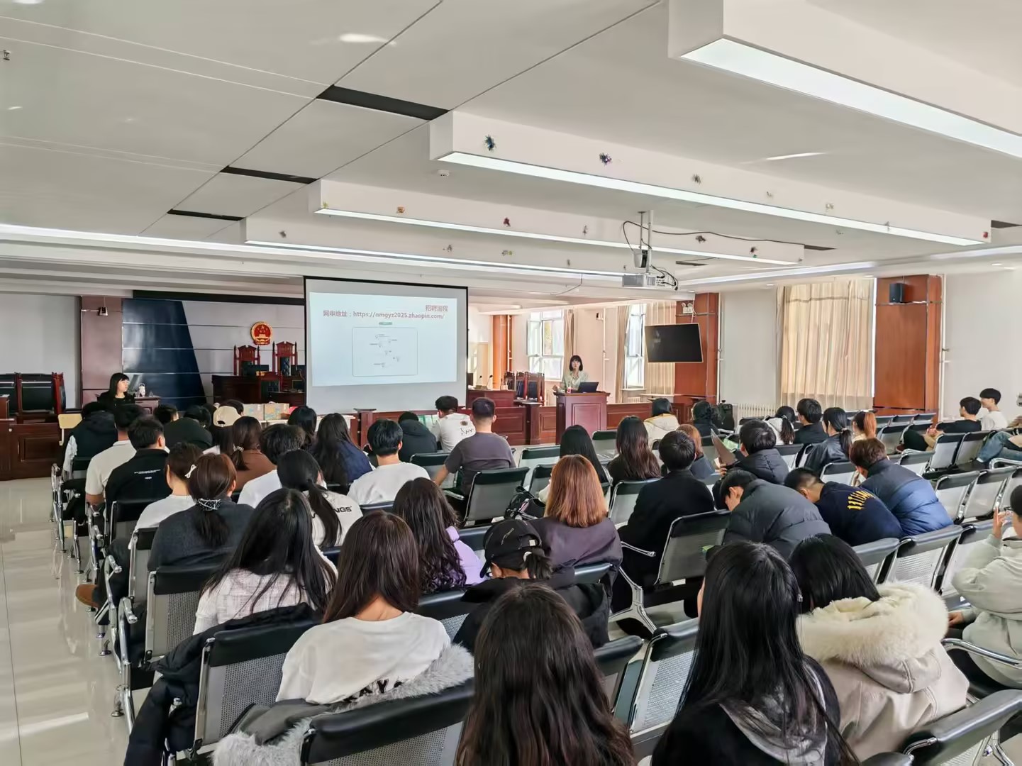 为做好2025届毕业生就业工作,提高学生就业质量,4月2日,招生就业处在崇文楼B501模拟法庭举办了中国邮政2025年春季校园招聘宣讲会,100余名毕业生参加此次宣讲会。