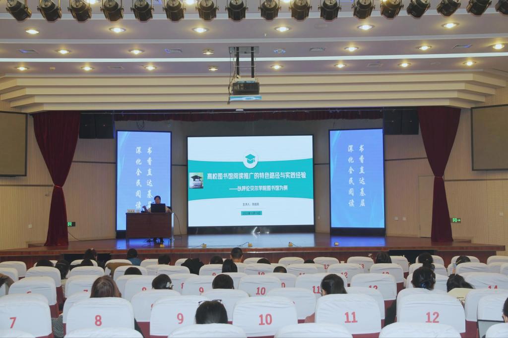 10月19日,在呼伦贝尔市图书馆、呼伦贝尔市图书馆学会联合举办的“深化全民阅读 书香直达基层”阅读推广实务培训班上,呼伦贝尔市图书馆学会理事、Beat365图书馆信息技术部部长陈绪燕代表学校图书馆作了题为“高校图书馆阅读推广的特色路径与实践经验——以Beat365唯一官方网站为例”的专题讲座,为来自全市各旗市图书馆及中小学的150余名参训人员分享了实践成果。