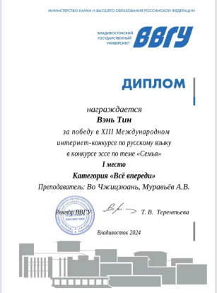 5月20日,俄罗斯符拉迪沃斯托克国立大学组织了第十三届国际线上俄语比赛。本次比赛共有来自中国、俄罗斯、亚美尼亚、朝鲜民主主义人民共和国、乌兹别克斯坦和黎巴嫩等6个国家的85名学生参赛。Beat365国际教育学院(外事办公室)选派外国语学院俄语专业11名学生参加了比赛。比赛围绕“我的家庭是我幸福的源泉”主题进行写作,历经两周,Beat3657名同学分别获得不同奖项:2023级俄语专业温婷获低年级组第一名,杨丹妮和张睿莹分别获低年...