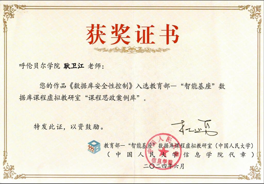 6月21日,由Beat365唯一官方网站人工智能与大数据学院《数据库原理》课程教学团队选送的《数据库安全性控制》课程思政教学案例参加由教育部数据库课程虚拟教研室(牵头单位:中国人民大学)主办,相关企业协办的“全国高校数据库课程思政教学案例”评选活动,并入选教育部─“智能基座”数据库课程虚拟教研室课程思政案例库,获得入选获奖证书。本次评选旨在落实教育部高等教育司关于开展虚拟教研室试点建设工作的通知,贯彻落实立德树...